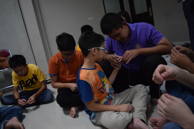 Setelah selesai pengajaran, kakak fasilitator memimpin sesi sharing yang dilanjutkan dengan kegiatan membuat gelang Rosario. Sekitar 25 peserta dan kakak fasilitator yang mengikuti kegiatan yang diadakan di Pondok Paroki Santo Lukas ini tampak antusias untuk membuat untaian manik-manik. Semoga antusiasme ini diikuti dengan semangat untuk terus berdoa Rosario seperti yang sudah dipraktekkan pada pertemuan minggu sebelumnya bersama Frater Baptista, OFMConv. Rosario menjadi senjata dalam menghadapi perang sehari- hari. Perang akan kemalasan, irihati, sombong dan lain- lain.