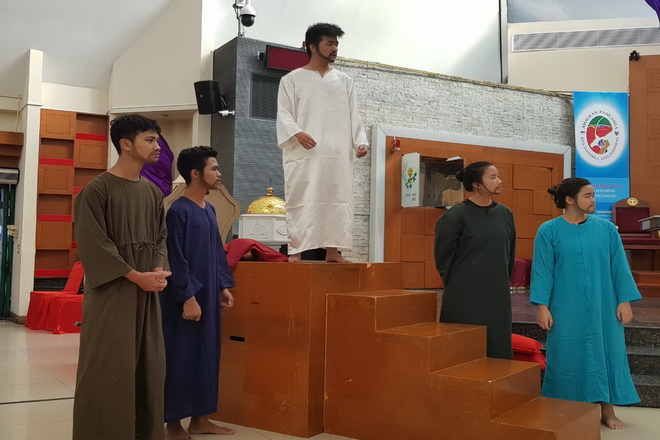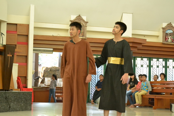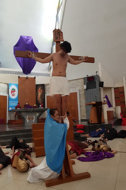 Orang Muda Katolik (OMK) Gereja Santo Lukas selama beberapa bulan telah mempersiapkan diri, menghafal dialog dan berlatih dengan sebaik-baiknya untuk pementasan Tablo, Jumat 30 Maret 2018 di Gereja Santo Lukas.