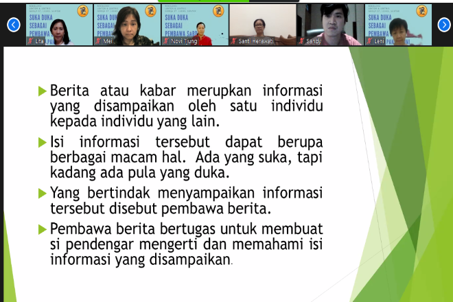 Lektor Lektris Paroki Sunter yang telah dilantik pada bulan Februari yang lalu, belum seluruhnya pernah bertugas karena kegiatan beribadah di Gereja mulai dinonaktifkan pada bulan Maret 2020. Meskipun demikian di masa pandemi ini sebagai pembawa sabda kita tidak boleh berhenti begitu saja walaupun kita belum dapat sepenuhnya bertugas di Gereja, tetapi kita harus banyak belajar dari situasi ini.