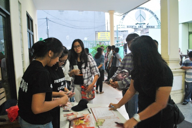 Dengan dihadiri tidak kurang dari dua ratus lima puluh hadirin acara diawali pada Pk. 19.00 WIB dengan Misa Kudus yang di persembahkan oleh Pastor Robert Zon Piter Sihotang, OFMconv. Hadir pula pada acara ini Perwakilan Dewan Paroki Harian, Ketua Bidang Liturgi, Ketua Seksi Misdinar, Perwakilan Sub Seksi Dokumentasi, dan Ketua Seksi Komsos. Pada pembukaan perayaan misa Romo Robert, begitu biasa disapa, mengajak agar umat dalam pelayanan memberikan diri secara utuh tanpa pamrih. “Kita melayani Tuhan bukan supaya tampil di depan lebih keren, berbeda dari yang lain, tetapi kita diajak oleh Tuhan untuk mengikuti-Nya dalam semangat kemiskinan, semangat kerendahan hati, dan semangat mau berbagi” tandasnya.