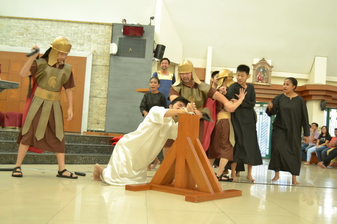 Orang Muda Katolik (OMK) Gereja Santo Lukas selama beberapa bulan telah mempersiapkan diri, menghafal dialog dan berlatih dengan sebaik-baiknya untuk pementasan Tablo, Jumat 30 Maret 2018 di Gereja Santo Lukas.