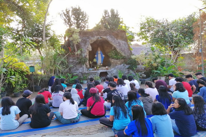 Sore harinya, para peserta berkumpul di paroki. Doa rosario yang dipimpin Suster Veronika Sudarmo, OSU segera didaraskan di Gua Maria. Selanjutnya mereka bergabung dengan peserta Bible Camp dan mempersembahkan gerak dan lagu "Called to Love". Kita semua diajak untuk pergi dan membagikan cinta kasih kepada sesama kita. Setelah makan malam bersama dan ramah tamah dengan Romo, DPH dan pengurus paroki lainnya, kami pun pulang untuk beristirahat.