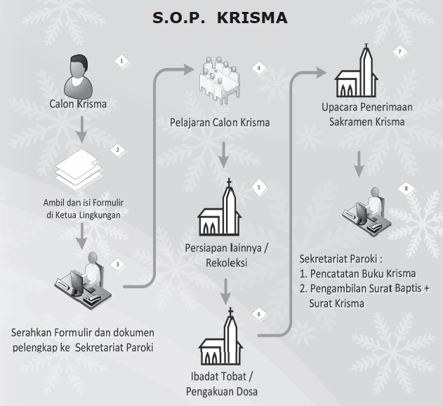 - Pengembalian Surat Baptis dan foto-foto dapat diambil di Sekretariat Paroki pada jam kerja 2 pekan setelah penerimaan Sakramen Krisma.